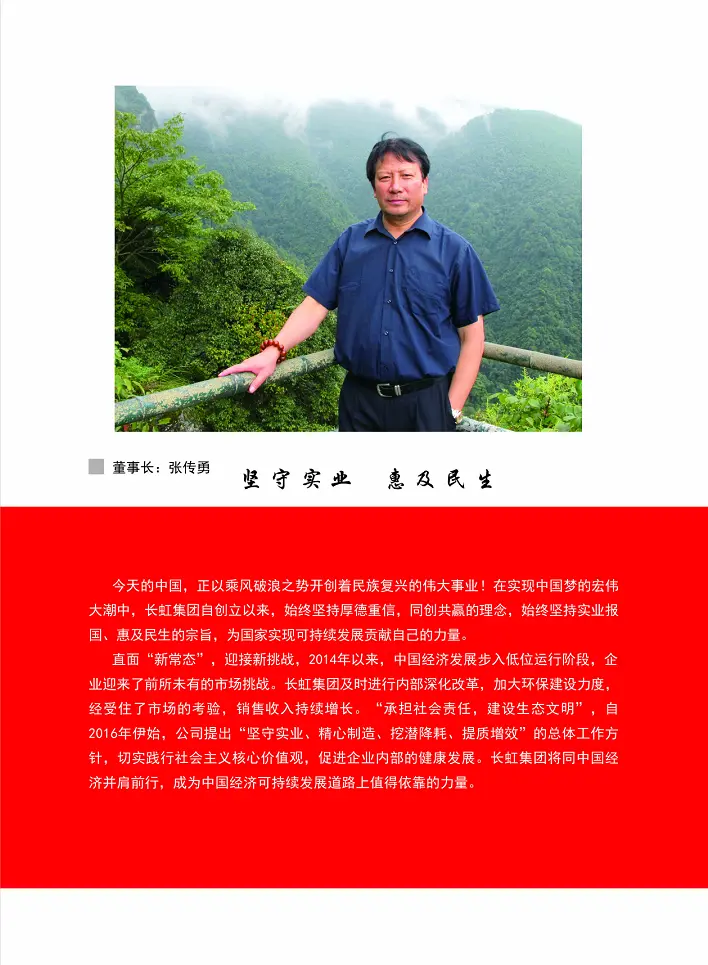 做事踏实认真、待人宽容诚恳、追求博大精深 、发展永无止境 。这是长虹人做人和做事的根本准则 ,也是长虹集团不断发展的座右铭。精诚所致,金石为开,我们将继续努力,不断追求一流品质和服务,营造热情开放、真诚协作 、开拓进取的共赢氛围。我们真诚欢迎社会各界宾朋 莅临长虹,共谋发展、共创辉煌。